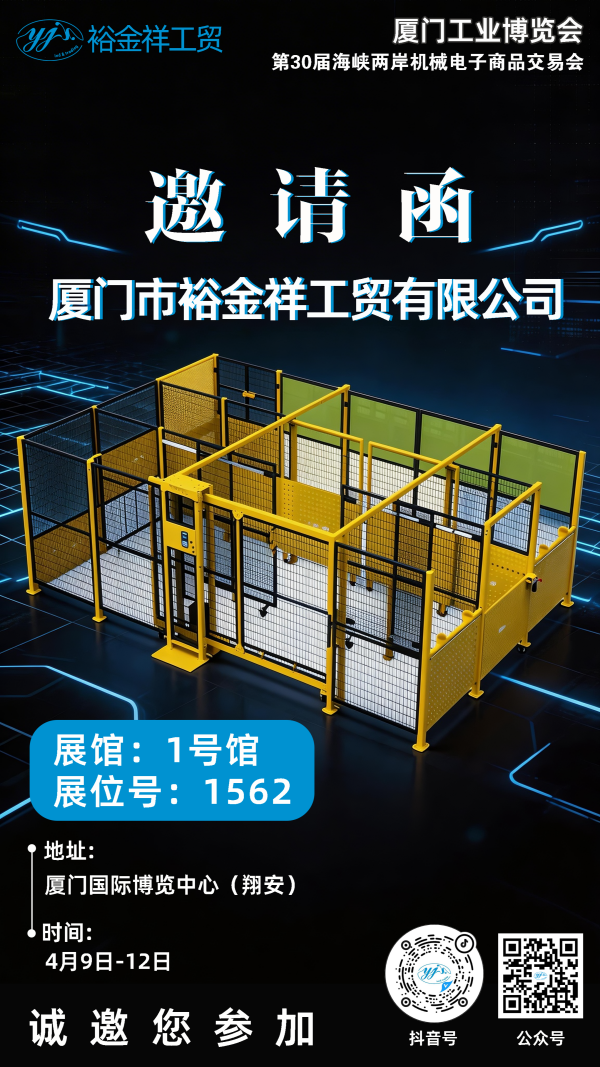 本次展會(huì)將于4 月 9 日 - 12 日,在廈門國際博覽中心(翔安)1 號(hào)館 1562 展位盛大開展。作為工業(yè)防護(hù)領(lǐng)域的深耕者,裕金祥工貿(mào)將攜多款核心防護(hù)產(chǎn)品重磅亮相,其中就包括圖中這款集安全防護(hù)、空間規(guī)劃于一體的智能車間隔離網(wǎng)系統(tǒng)。該產(chǎn)品采用高強(qiáng)度框架與優(yōu)質(zhì)網(wǎng)片,黃黑配色醒目警示,搭配可定制化的透明 / 網(wǎng)格面板,既能有效劃分作業(yè)區(qū)域、保障人員設(shè)備安全,又不影響車間采光與視野,適配自動(dòng)化生產(chǎn)線、機(jī)器人工作站、倉儲(chǔ)分區(qū)等多元工業(yè)場景,為工廠安全管理提供一站式解決方案。